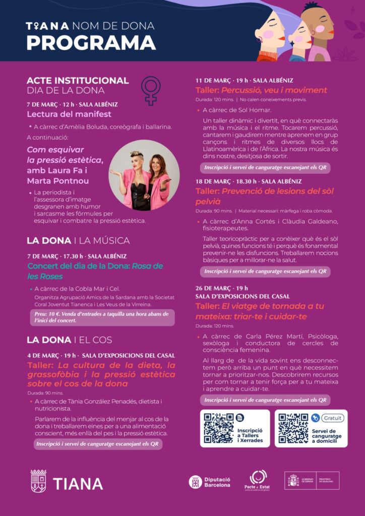 Amb motiu del 8M, Dia Internacional de les Dones, l’Ajuntament de Tiana ha dissenyat una programació destinada a reivindicar, empoderar i cuidar totes les dones.