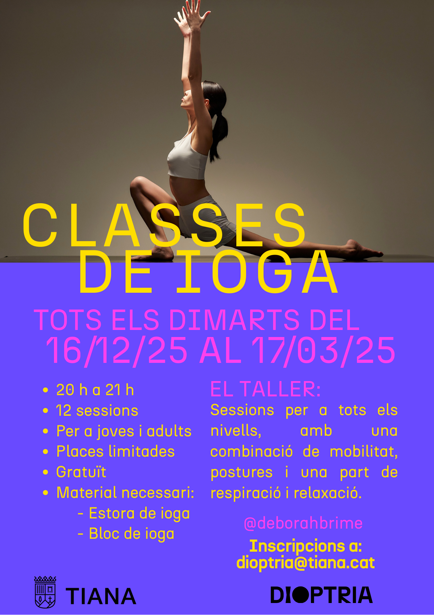 12 Sessions per a tots els nivells, amb una combinació de mobilitat, postures i una part de respiració i relaxació.