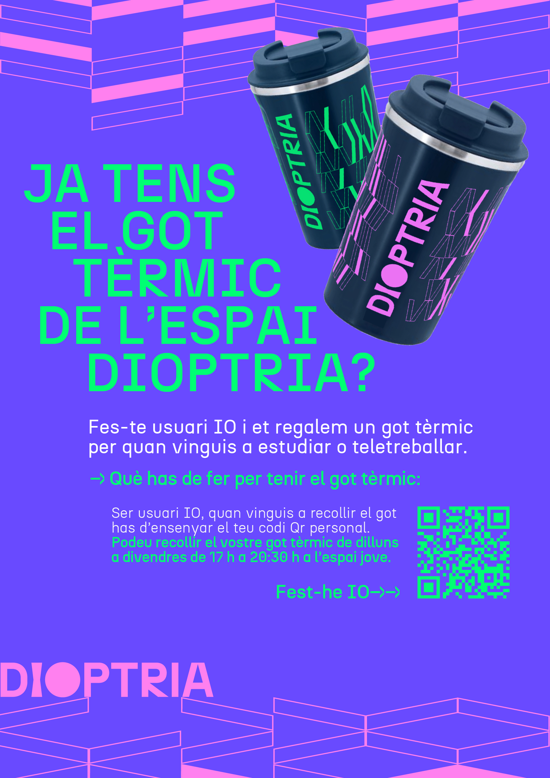 Si ets usuari o usuària IO, et regalem un got tèrmic perquè el puguis utilitzar quan vinguis a estudiar o a teletreballar.