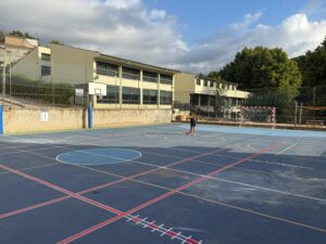 Espai obert a l’aire lliure on es disposa de dues cistelles de bàsquet exteriors i paviment de sorra.