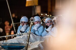 La nit de Reis cal anar a dormir d’hora. Els dormilegues de la comparsa Llits de somnis recorden als infants que no val a badar i que no poden fer el ronso a l’hora d’anar a dormir.