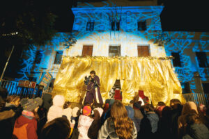 Els joguinaires en bicicleta i acompanyats de la Bandabòlit, dixen veure regals i escales gegants a punt per repartir a totes les cases.